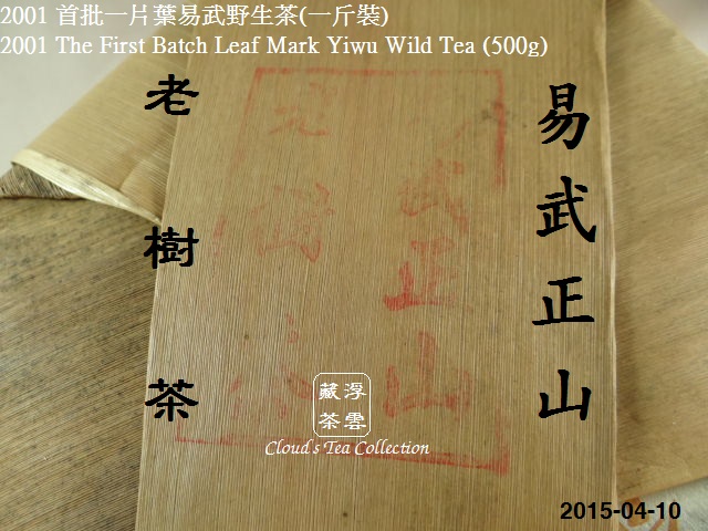 2001 首批一片葉,相信不用浮雲多介紹,不少茶友都知道是廣州新業茶行(XY = Xin Ye)葉炳懷先生於 2001 年委託猛海茶廠,訂製推出的一款以「一片葉」作主題之「易武正山野生茶」,這次的外包印刷風格有別於那棵「綠大樹」標誌。雖然只是 2001 年的茶,但屈指一算,至今也已是十四年陳期的茶品了。浮雲收藏的這款「易武正山野生茶」是 500g 的規格,所以在外包紙上會印有一斤裝的字樣(原文:一斤莊),以表示是大陸的市斤(500g)。