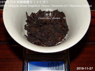 說實在,《1970 年代中茶牌簡體字(十七字)》是《1970年代初.綠字黃印〔超優乾倉 - 約 48 年陳〕》(2018年7月28日)之外,較為便宜的舊茶選擇,是這類身家豐厚的茶友,現買現喝的理想陳年舊普洱茶品。可惜,今天這類茶,根本是一餅難求,不是有錢就能購得,基上是沒有收藏家願意割愛,尤其是倉儲優質者。