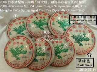 【《2008 白水清配製 - 南嶠「綠大樹」勐海早春老樹茶(特製品)》- 以生產日期區分,可能更有依據】