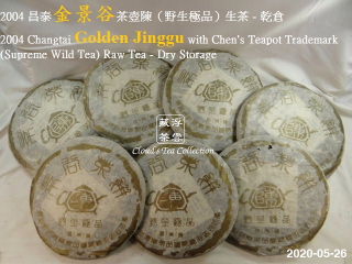 《2004 昌泰金景谷茶壺陳(野生極品)生茶-乾倉》開茶茶香厚實開揚,年輕的陳年梅子糖甜香初現,十分迷人,甜美討喜,甜度豐富,有質地,有深度,優雅高端,像似「1970年代初綠字黃印」茶還年輕時的感覺。這青樟香,很有「印級茶香」的傳承感覺,只是現在年青了一點,那久違了的「印級樟香」能重現於「小景谷」的極品野放古樹茶,實在驚豔感動!