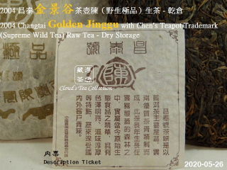 由於市場上充斥著不同倉儲品質的《2004 昌泰金景谷茶壺陳(野生極品)生茶》,為此,《浮雲茶館》出售之 「乾倉」《金景谷》,餅背更貼有特殊的產品認證防偽標籤(金景谷專用),乾倉認證,以供茶友日後鑑別之用。